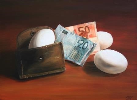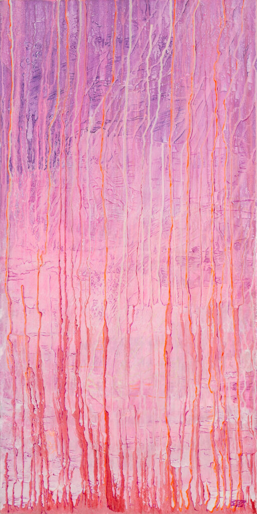 Her motorcycle creates courage and influences her work. In the series ‘Down Under’, the eggs and snouts make way for the underwater world. Estranging images. More abstraction. Diverse sizes of canvases. Diverse backgrounds like wooden panels and concrete. Less focussed on technique, but more room for coincidence and the spectator’s interpretation.